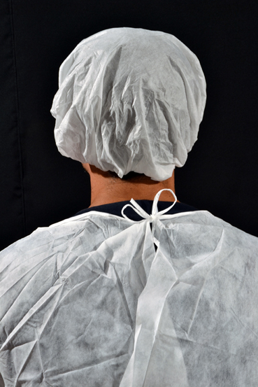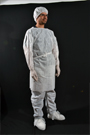 Casaca manga larga con puños elastizados, abierta en espalda con dos tiras en el cuello y la cintura para cerrar y ajustar. El largo de la prenda en el talle XL es 110 cm aprox.
