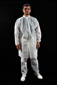 Tipo delantal manga larga elastizado en los puños, cuello mao, abierto en el frente con 4 abrojos o broches para su cierre y ajuste. Largo aproximado en el talle XL es de 110 cm.